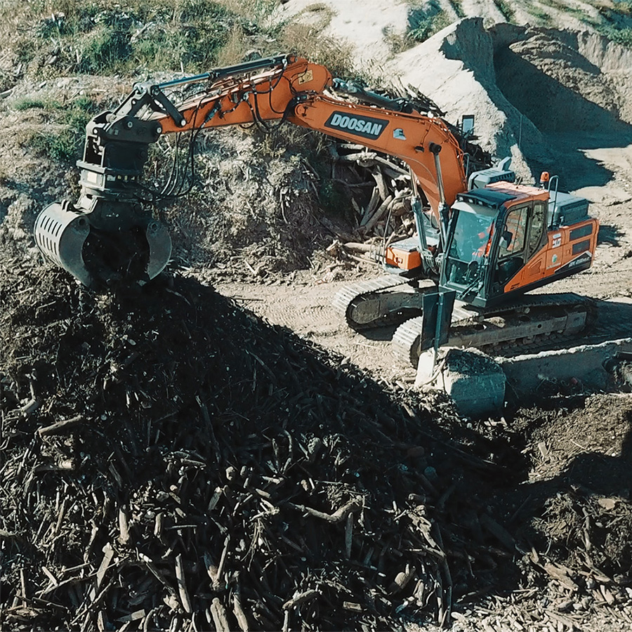 “Oggi abbiamo tre pale gommate Develon (due DL420-7 e una DL320-7, ultima arrivata), cinque escavatori cingolati ( DX210NLC-7 e DX245NLC-7 sia mono sia triplice), abbinati a un sollevatore telescopico Bobcat che utilizziamo per le manutenzioni sicure degli impianti, anch’esso acquistato da DMO Macchine".