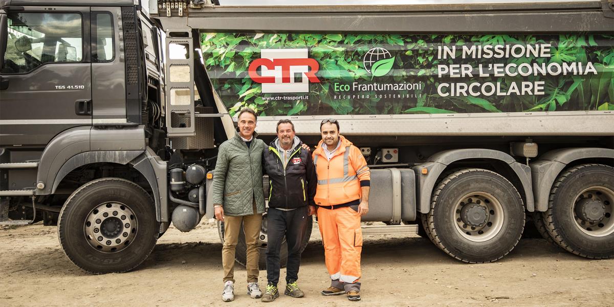 “Così è stato, e oggi abbiamo davvero una flotta importante di mezzi al lavoro nel loro sito produttivo e sui cantieri che seguono; non solo i mezzi che vedete oggi qui al lavoro e che sono stati acquistati da Eco Frantumazioni, ma anche otto macchine a noleggio lungo termine, che consentono all’azienda di non bloccare capitali che possono essere investiti nello sviluppo strategico dell’attività produttiva”.